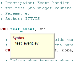 Note: Use file comments only in conjunction with routine comments. If file comments exist in a .pro file without routine comments, Hover Help will display the file comment for the following routine.