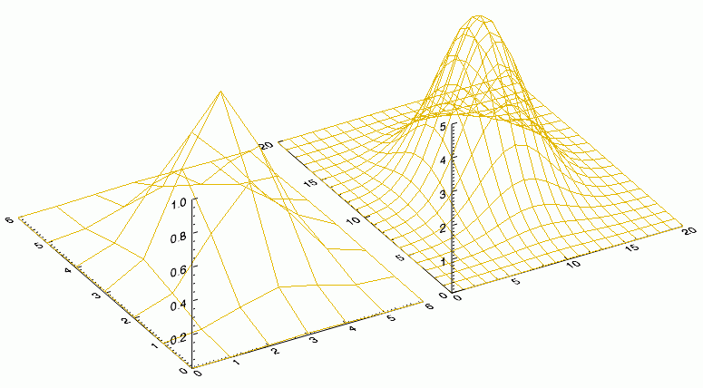 gauss2 = GAUSSIAN_FUNCTION([3,3], WIDTH=20, MAXIMUM=5)